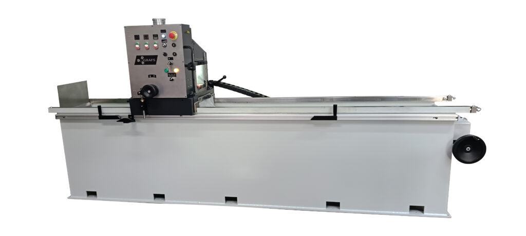 GRAFS SR to prosta w obsłudze szlifierka, przeznaczona głównie do ostrzenia noży używanych w przemyśle poligraficznym, papierniczym, metalowym, drzewnym oraz recyklingowym. Maszyna posiada szereg ulepszeń umożliwiających osiągnięcie wysokiej jakości ostrzenia oraz wieloletniego okresu użytkowania. Jest wyposażona uchylny stół elektromagnetyczny lub stół o mocowaniu klamrowym. Maszyna występuje w kilku wersjach, zakresach szlifowania: 1200mm, 1800 mm, 2100 mm, 2400 mm (w zależności od zamówienia).