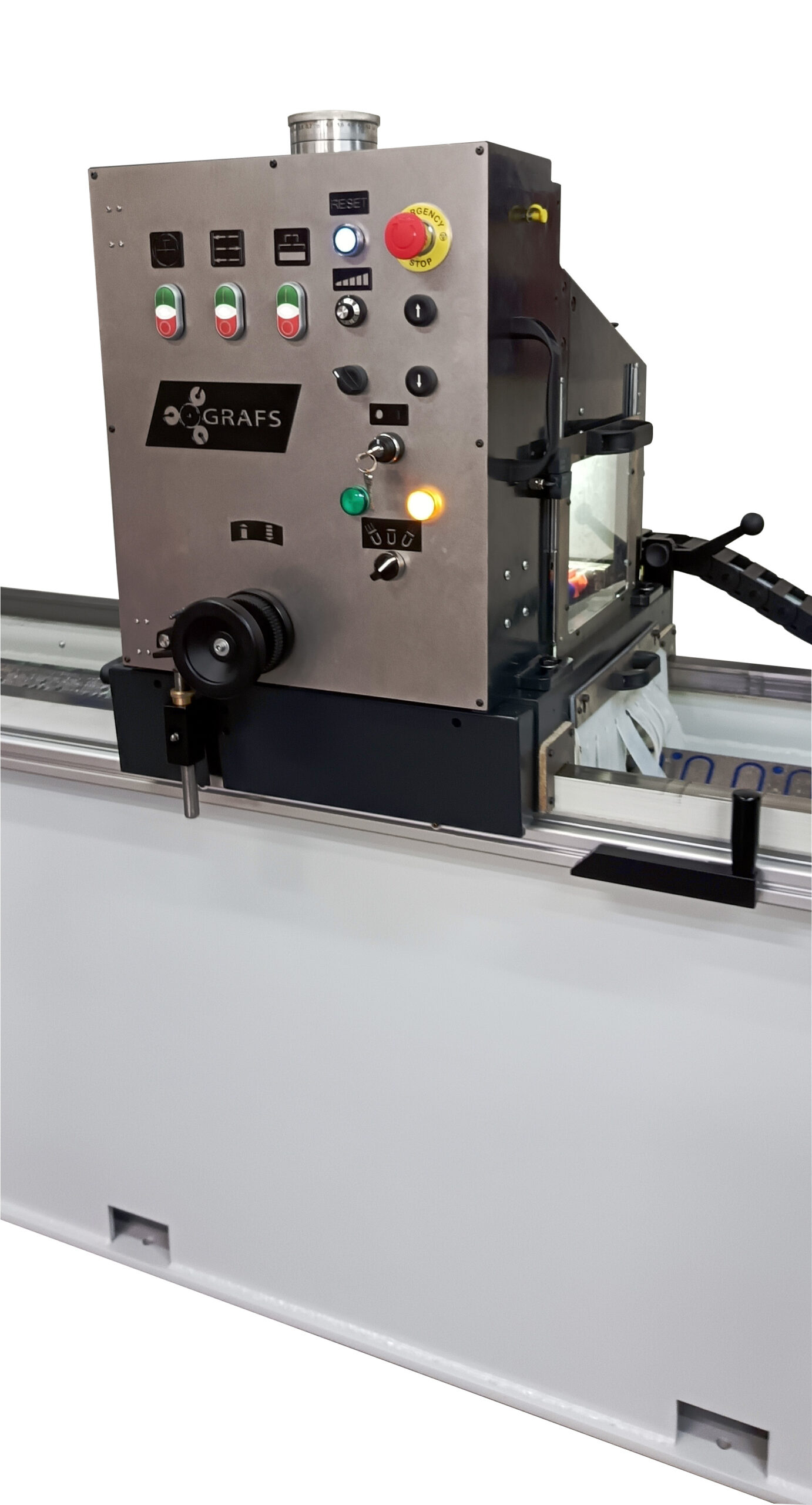 Maszyna posiada funkcję szybkiego przejazdu góra / dół silnika ściernicy (jako opcja), oraz możliwość ręcznego bardzo dokładnego manipulowania położeniem ściernicy za pomocą ergonomicznego koła ręcznego.