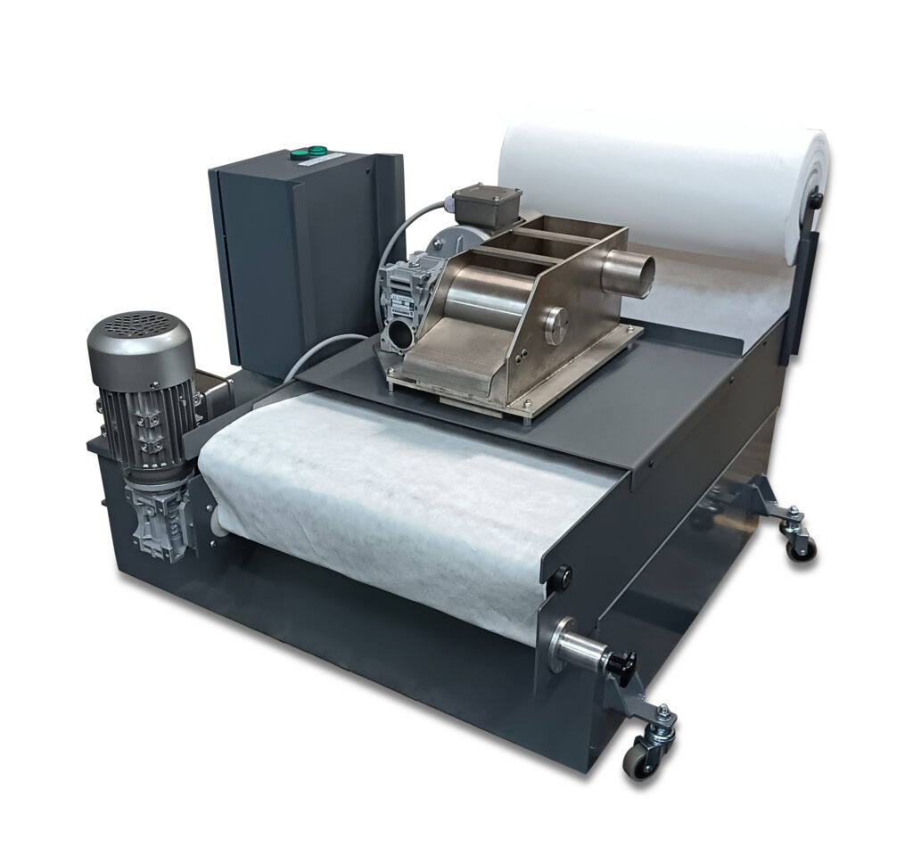 Inną opcją jest papierowy filtr włókninowy PS, przeznaczony do filtracji materiałów niemagnetycznych, takich jak pyły ze ściernic czy urobek z węglików spiekanych. Filtr działa w trybie automatycznym. Kiedy zanieczyszczone chłodziwo osiągnie określony poziom, czujnik uruchomi przewinięcie włókniny filtrującej.